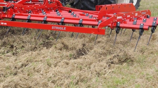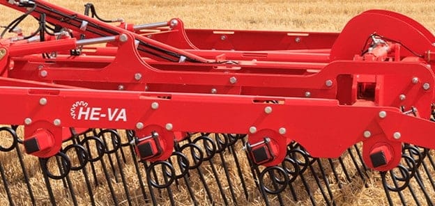 HE-VA Top-Strigle es una rastra rápida y rentable con púas de gran diámetro que se puede utilizar tanto antes como después de la cosecha para dividir los rastrojos y las sobras de paja. El TOP-Strigle esparce la paja de manera uniforme en todo el campo para ayudar con la siembra y el control las malas hierbas.