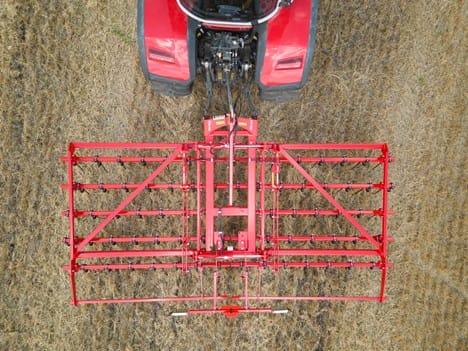 - El ajuste hidráulico del ángulo de las púas permite variar la agresividad de la rastra en movimiento a medida que cambian las condiciones.