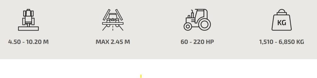 - Plegado y desplegado controlado desde la cabina del tractor y puede hacerse en segundos