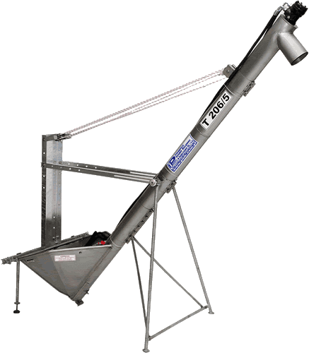 El sinfín hidráulico para cargar sembradoras y abonadoras, modelo T-206/5 de POM es la solución más rápida y robusta sin necesidad de electricidad.